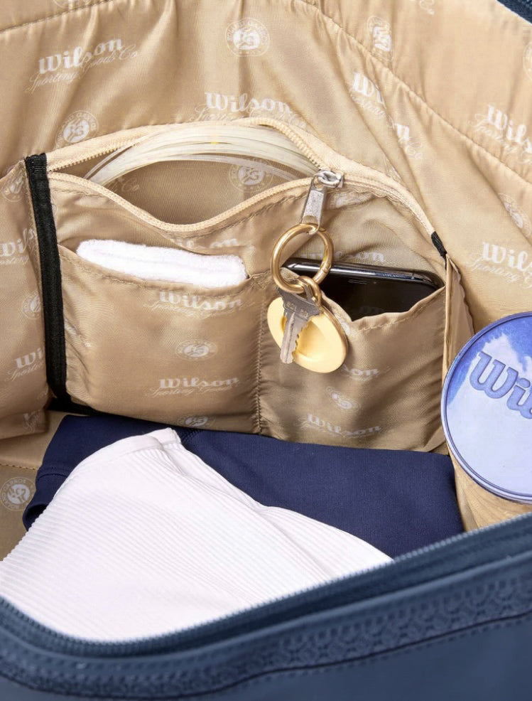 Night sessions are one of the things that make the Roland-Garros tournament iconic. This large duffel from Wilson takes inspiration from the colors and feel of moonlit matches, giving players a sophisticated way to transport gear. It's designed to fully enclose up to six rackets, and the large main compartment comes with dividers to keep items in line. The front accessory pocket is perfect for small valuables like a phone, wallet or keys.